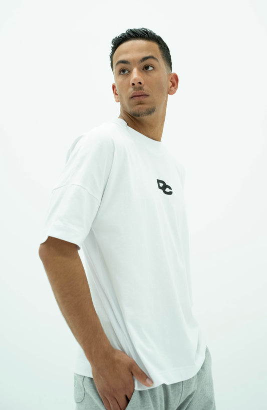 Oversized White T-shirt with Long DC detail in the back